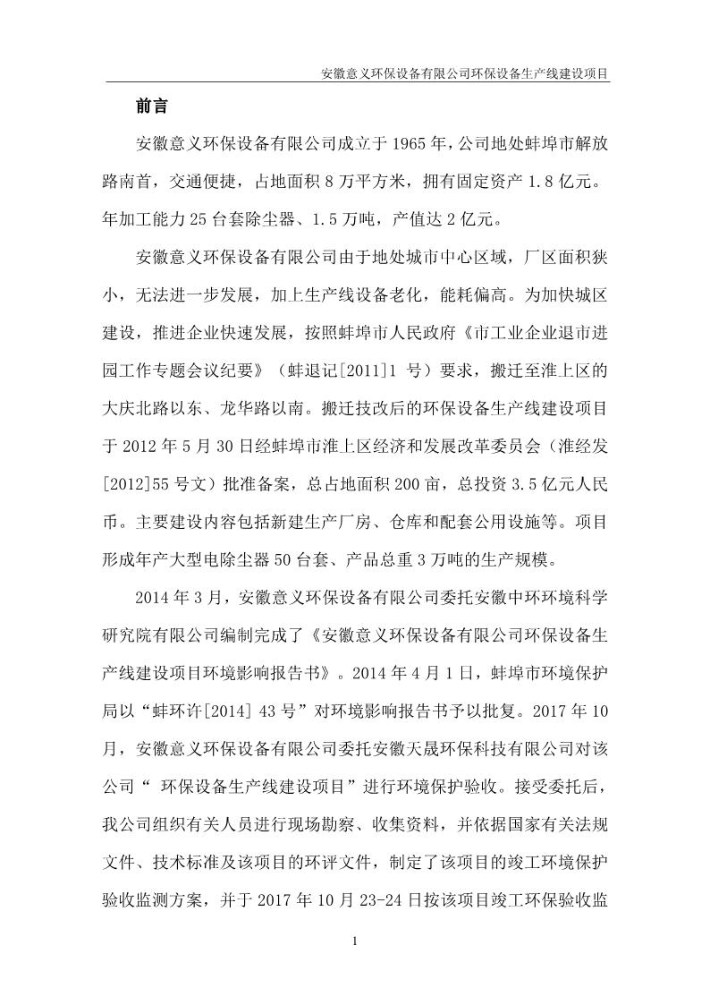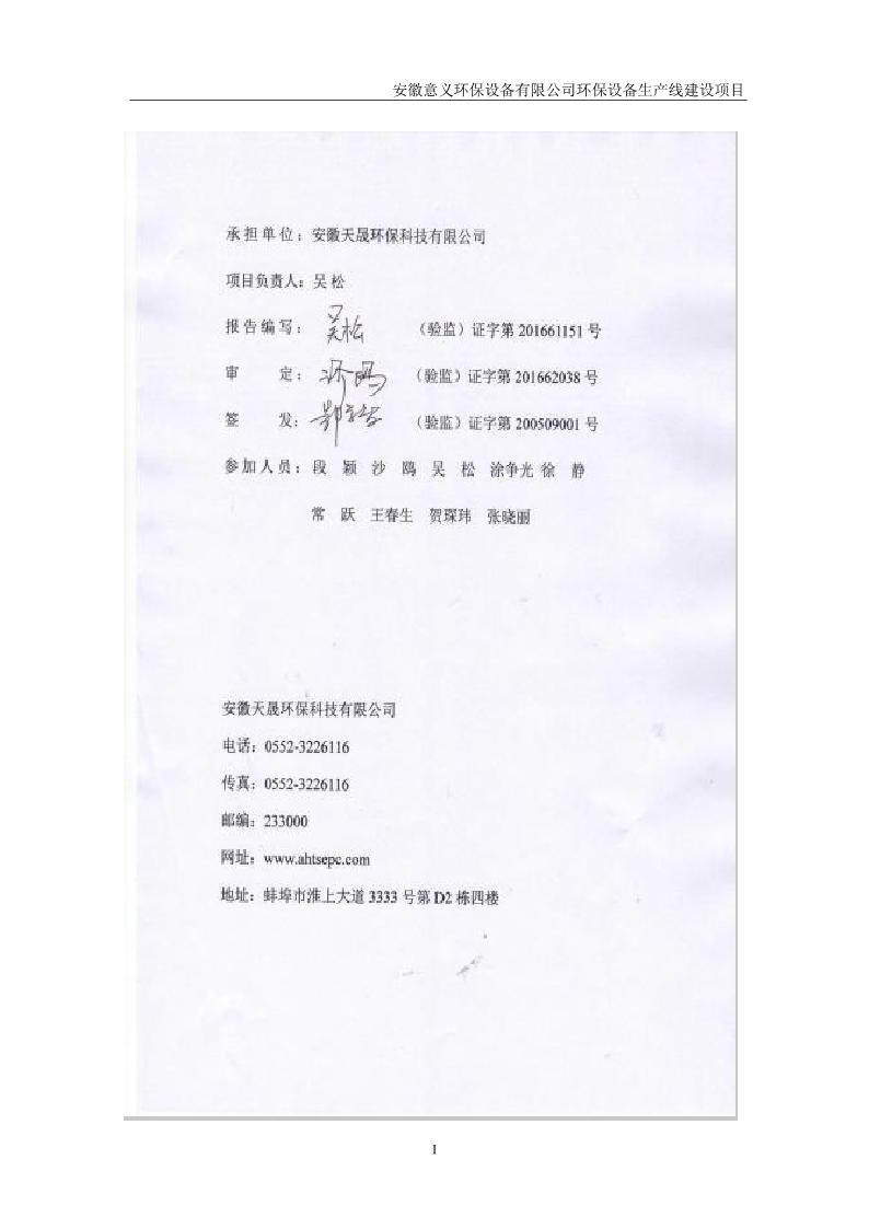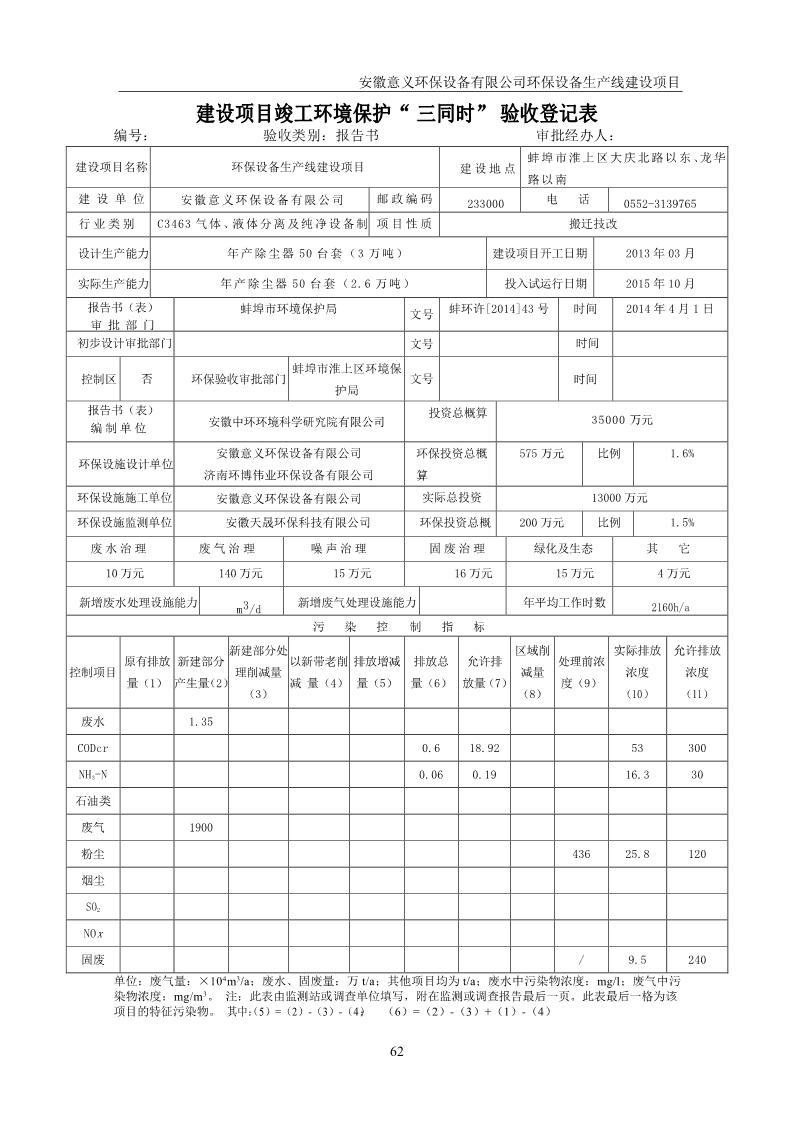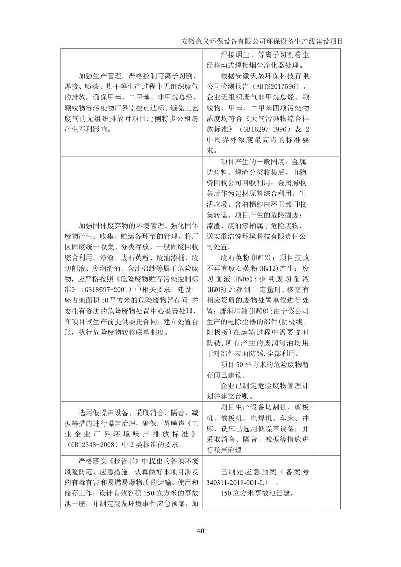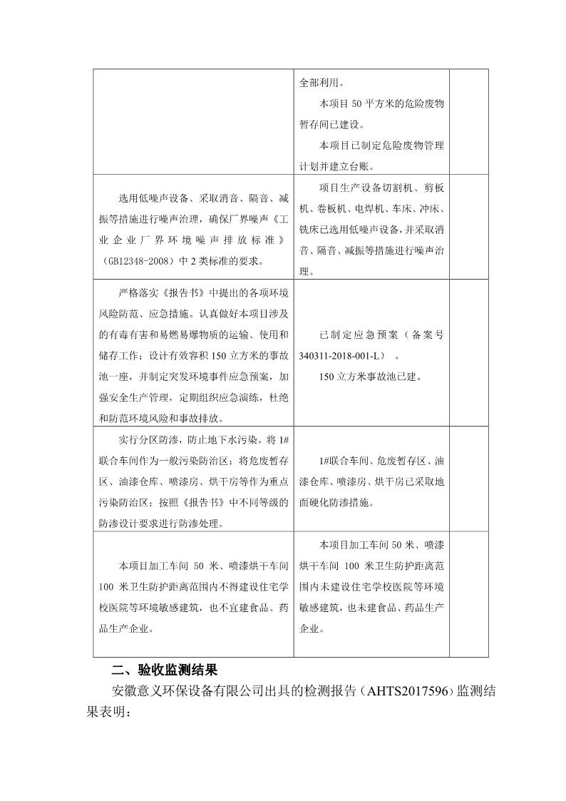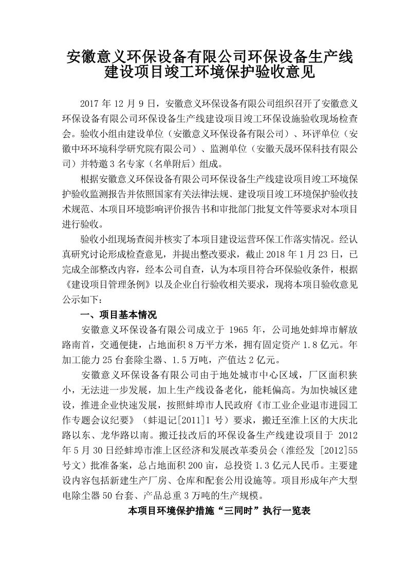 安徽意義環保設備有限公司環保設備生產線建設項目竣工環境保護驗收意見