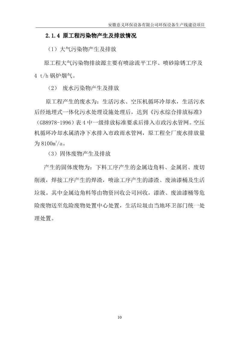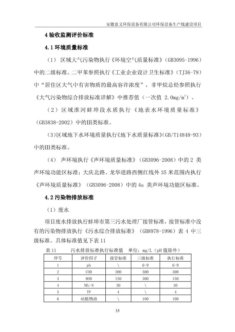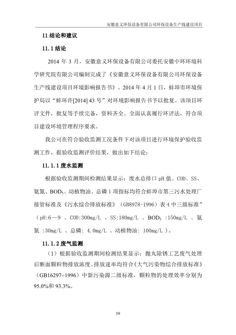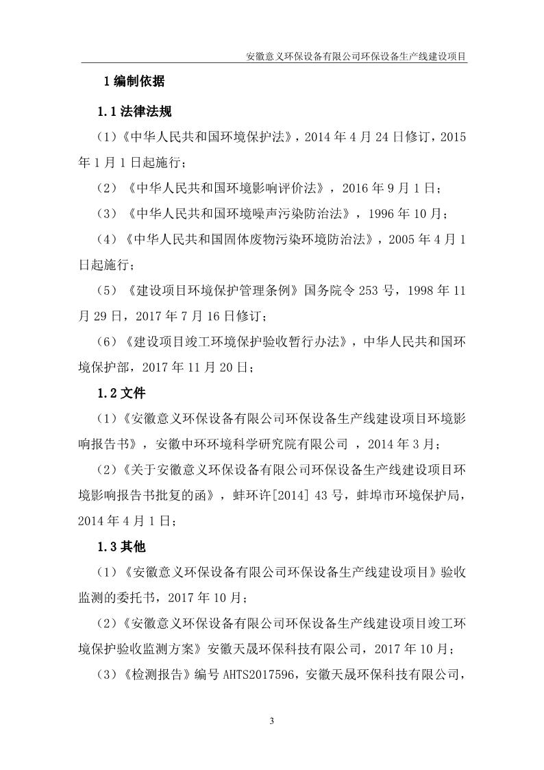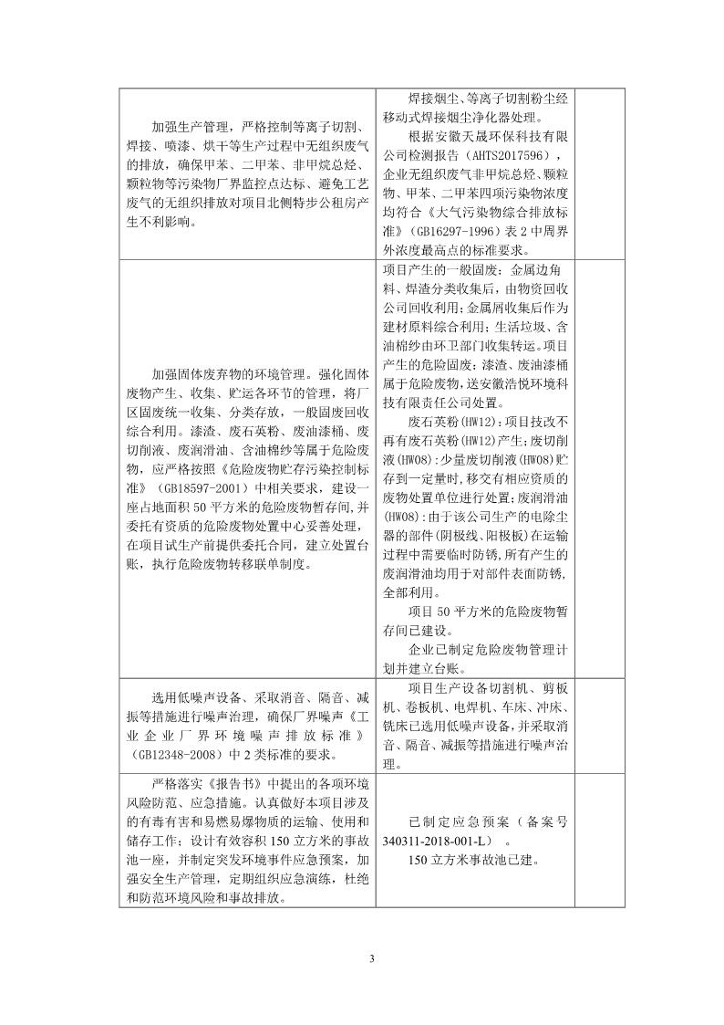 安徽意義環保設備有限公司環保設備生產線建設項目竣工環境保護驗收意見