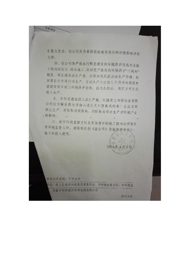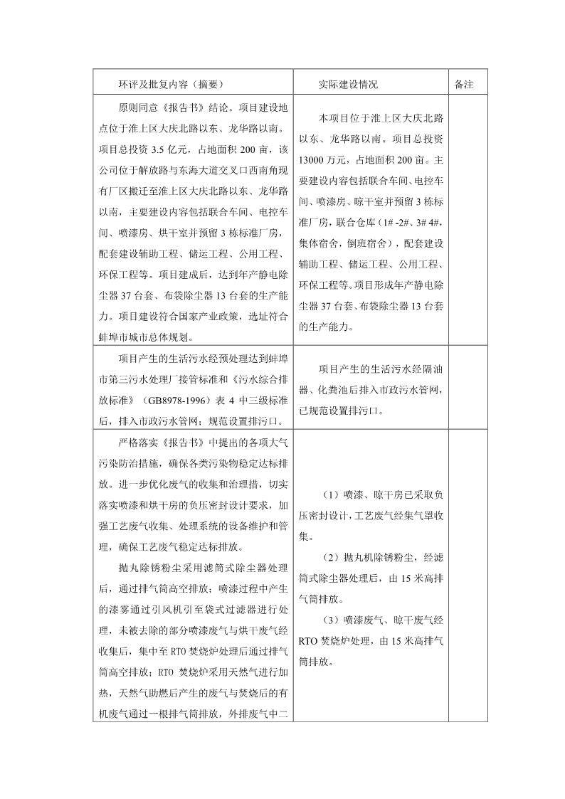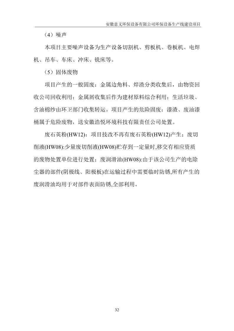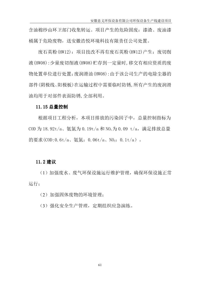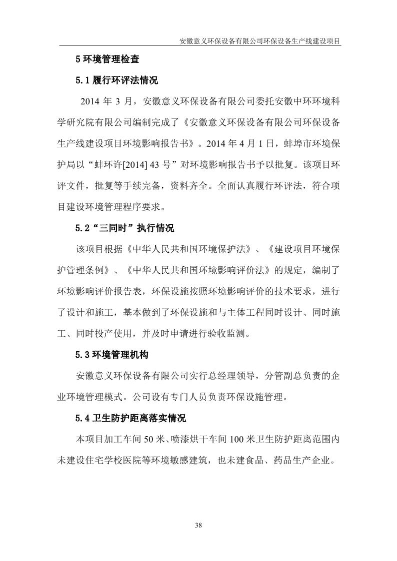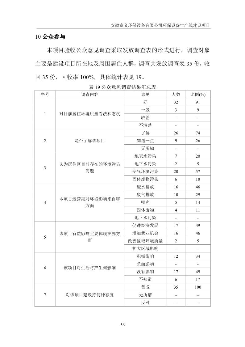 安徽意義環保設備有限公司環保設備生產線建設項目竣工環境保護驗收意見