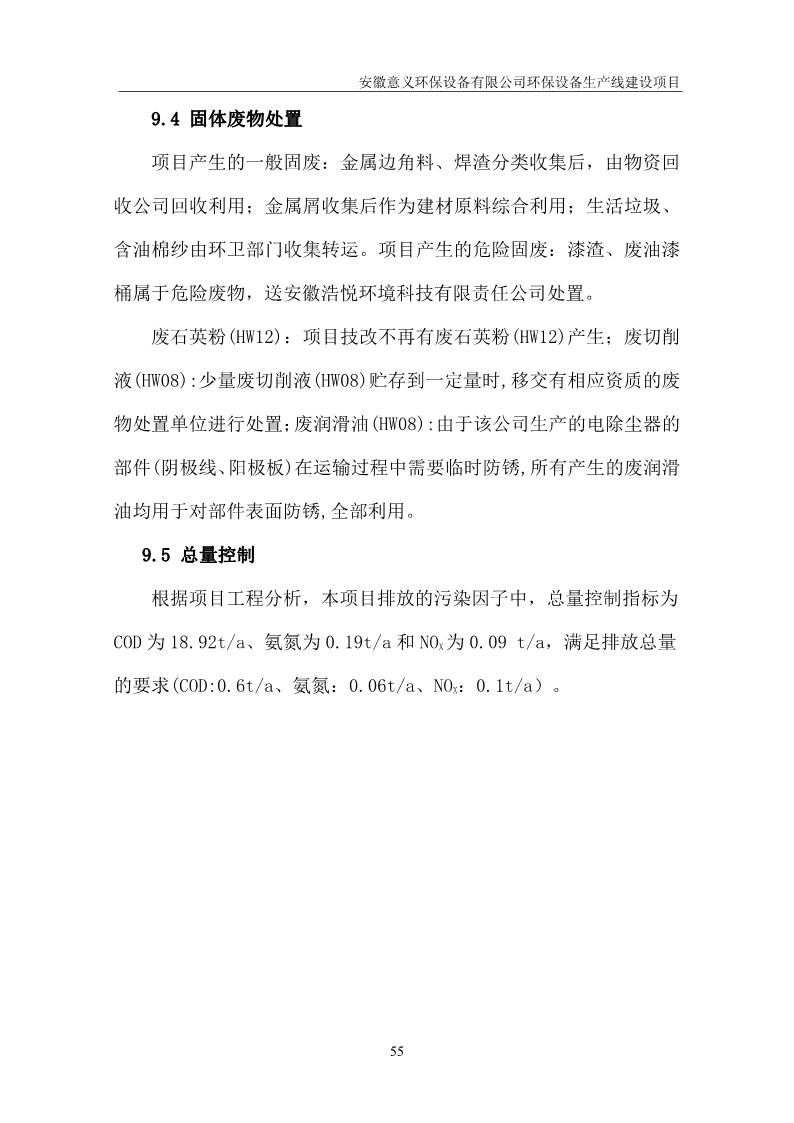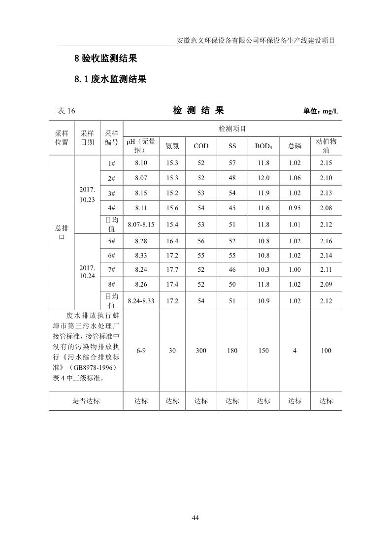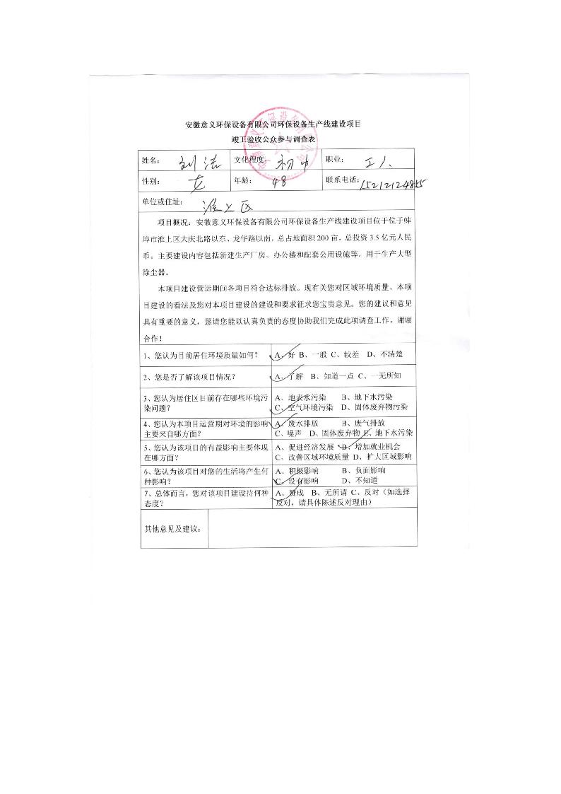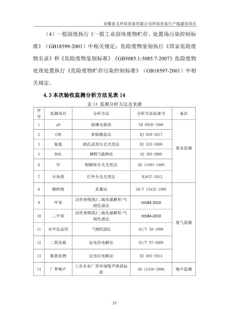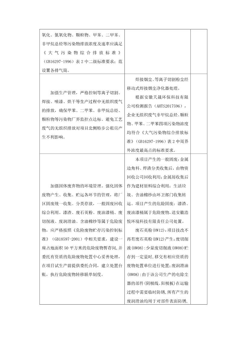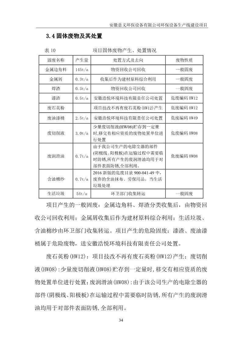 安徽意義環保設備有限公司環保設備生產線建設項目竣工環境保護驗收意見